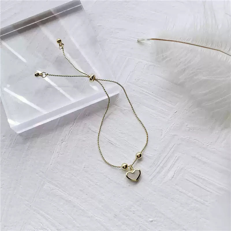 ✨ 這款手鍊以甜美少女風格為主題,結合珍珠與桃心吊墜,展現簡約與氣質的完美結合,適合日常佩戴或送禮!