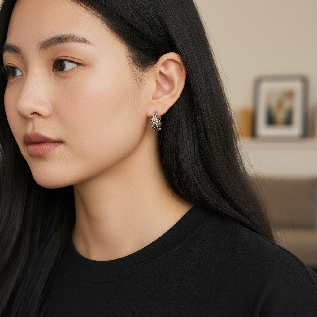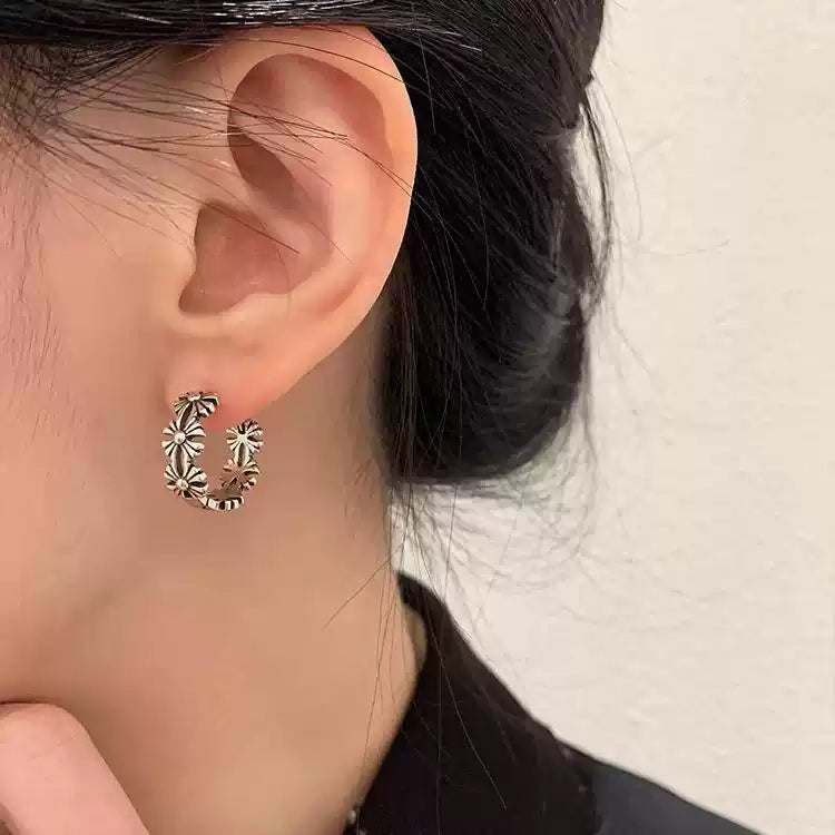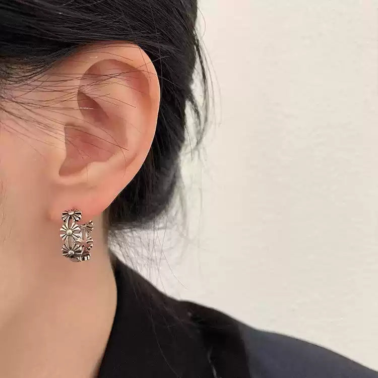 【暗黑美學】十字圓圈藤花耳環 - 復古做舊工藝|鏤空設計|