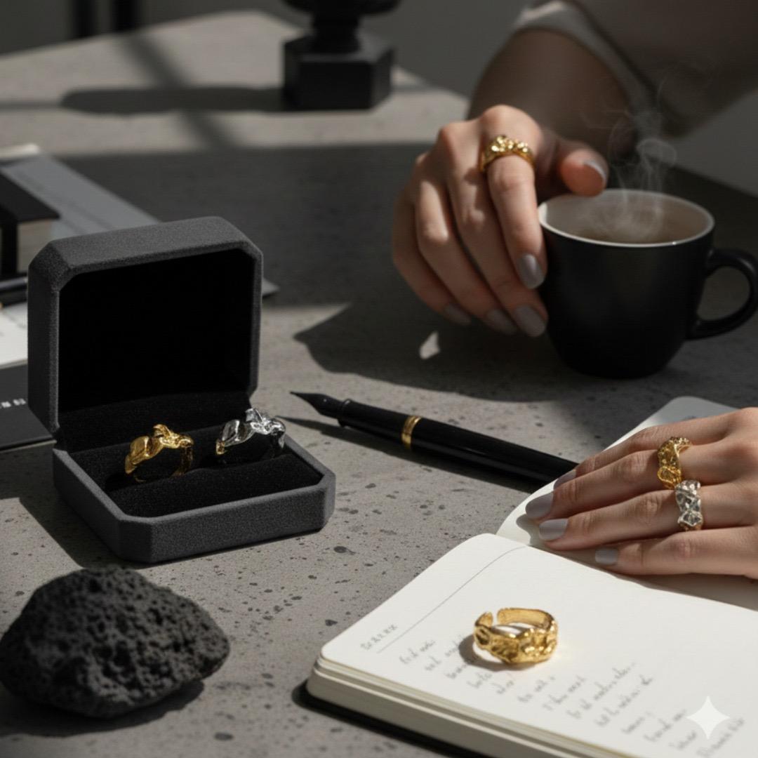 以不規則褶皺模擬岩漿冷卻瞬間。泰銀質感展現冷調工業風,適合追求獨特的你。