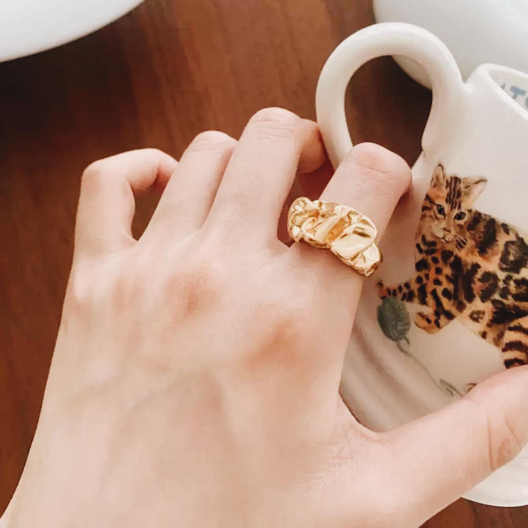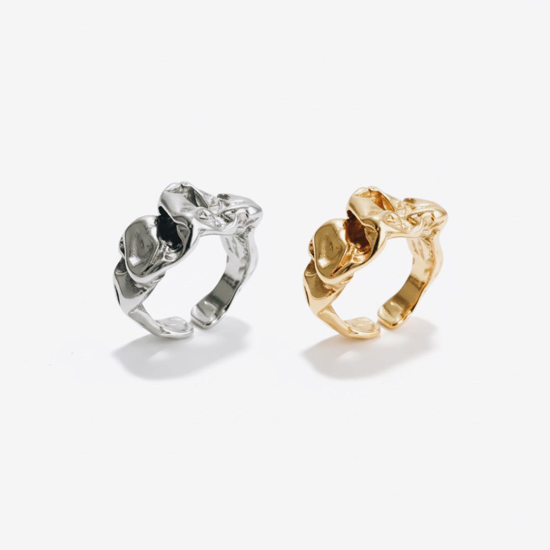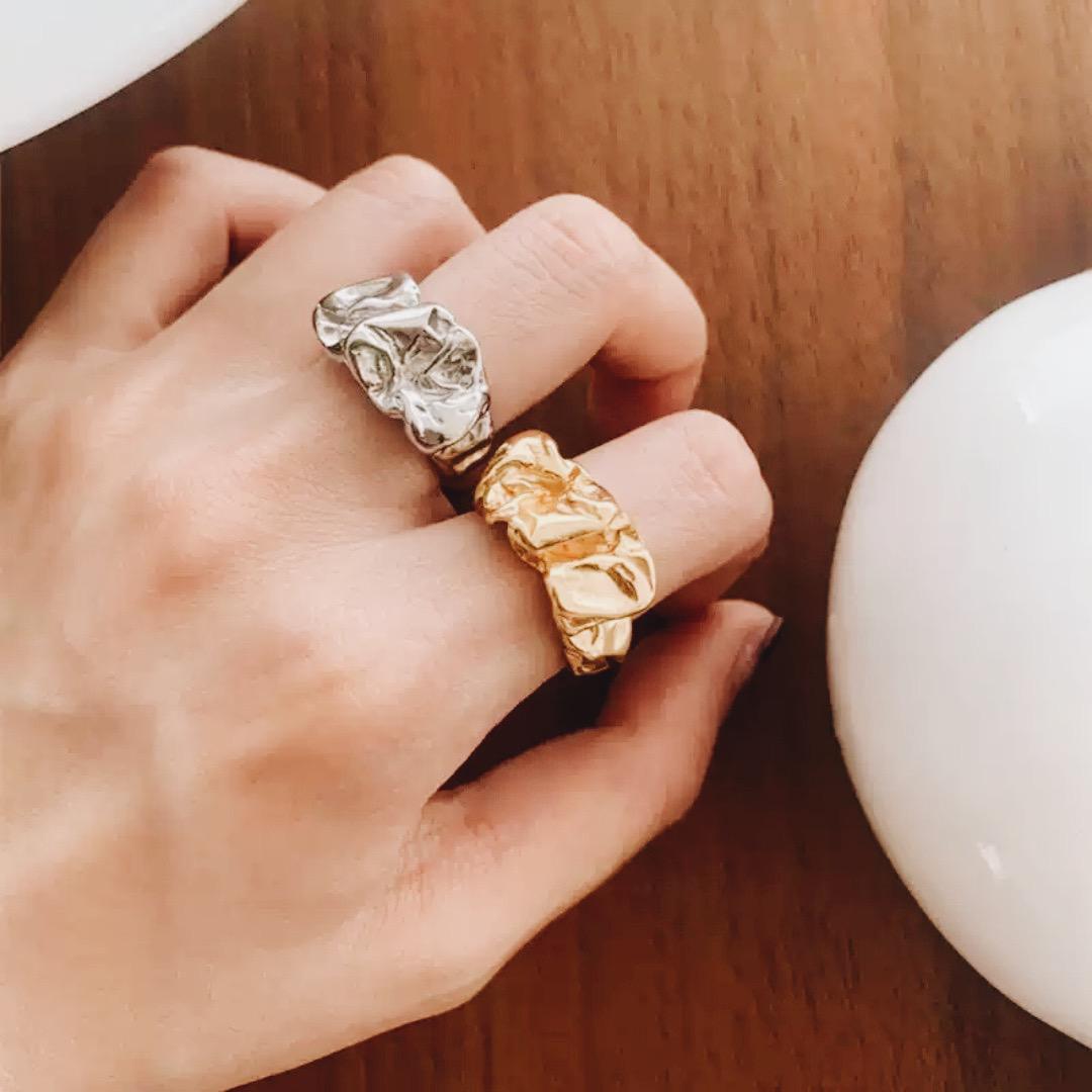 熔岩不規則褶皺戒指 - 金銀雙色工業冷淡風